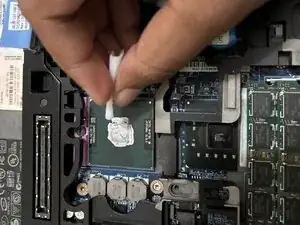 Используйте изопропиловый спирт (салфетки или жидкость на ватной палочке, 90% или выше), чтобы удалить термопасту с кристалла процессора и с охладителя. Если используете спирт менее 90%, убедитесь, что салфетка или ватная палочка влажные, и используйте небольшое трение ногтем или зубочисткой (термопаста попадёт на кожу и одежду и трудно смывается, поэтому используйте перчатки).