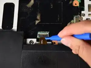 Используйте пластиковый инструмент для открытия, чтобы приподнять чёрную защёлку и отсоединить разъём подставки для ладоней.