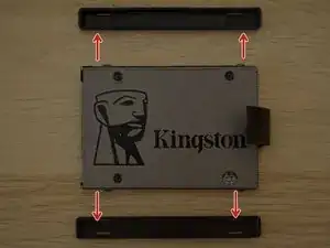 С помощью отвёртки Phillips #00 отвинтите четыре винта — по два с каждой стороны накопителя.