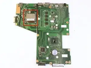Отсоедините плату Wi-Fi от материнской платы, аккуратно сдвинув её к правому краю ноутбука.