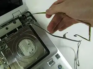 Поднимите провода Wi‑Fi и выведите их из‑под металлических защелок.