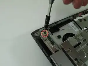 Используйте крестовую отвертку Phillips #00, чтобы открутить два винта, фиксирующие крышку жесткого диска (HDD).