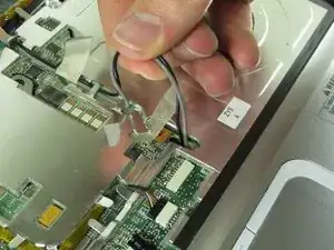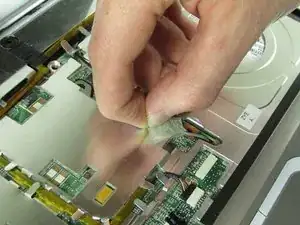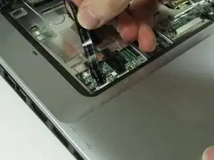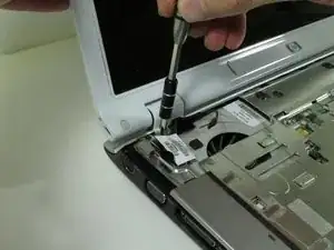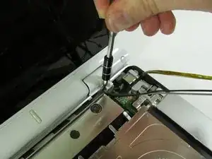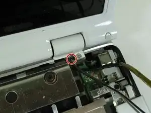Используйте крестовую отвертку Phillips #00, чтобы открутить черный винт, расположенный в правом верхнем углу возле дисплея.