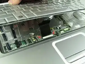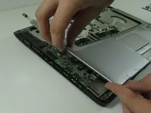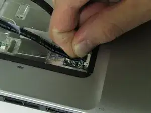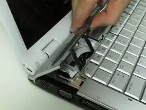 Используйте инструмент для открытия iFixit, чтобы поддеть пластиковую планку над клавиатурой.
