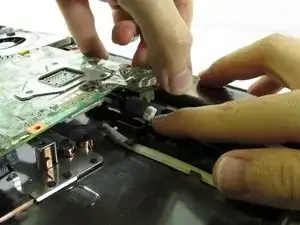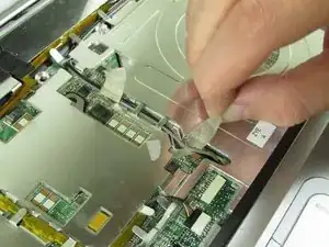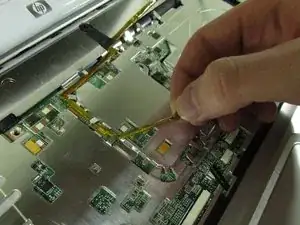 Будьте осторожны, чтобы не дернуть слишком сильно и не вырвать ленточные кабели, находящиеся под ней. Пространства достаточно для безопасного снятия, но действуйте аккуратно, чтобы не повредить детали.