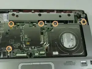 Снимите пять винтов, расположенных на крышке материнской платы.