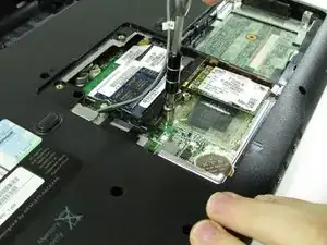 Отверткой Phillips №00 выкрутите один винт рядом с местом, где был модуль ExpressCard.