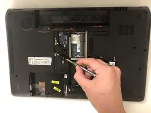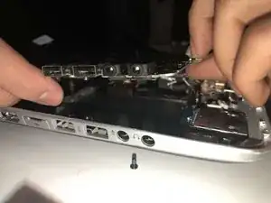 Открутите семнадцать винтов Phillips #00, фиксирующих заднюю панель к ноутбуку.