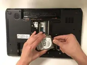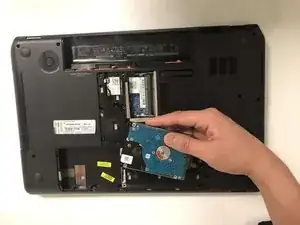 Возьмитесь за чёрную бирку на жёстком диске, потяните влево, а затем вверх, чтобы снять его.