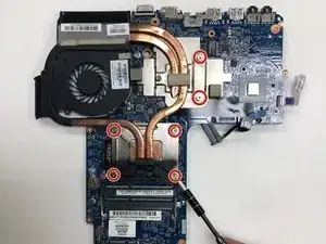 Выкрутите шесть винтов, крепящих радиатор к материнской плате.