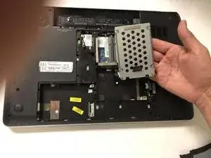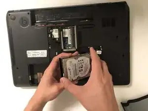 Открутите два винта Phillips #00, удерживающих жёсткий диск.