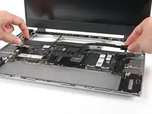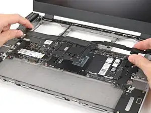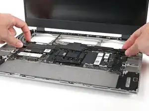 Поднимите среднюю панель пальцами и снимите её с ноутбука.