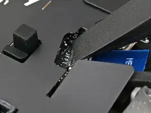 Используйте плоский конец отвертки Framework, чтобы соскрести затвердевшие участки жидкого металла с процессора.