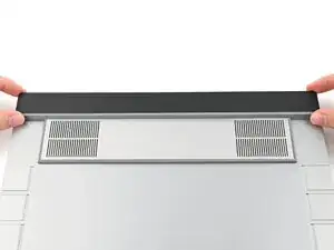 Разместите вентиляционную крышку вдоль верхнего края ноутбука и дайте магнитам притянуть её на место.