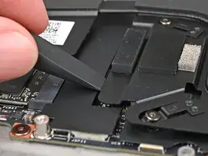 Если пористая прокладка на процессоре не отрывается вместе с лентой, используйте плоский конец отвертки Framework, чтобы поддеть её.