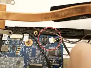 Отключите кабель соединения аккумулятора от материнской платы.