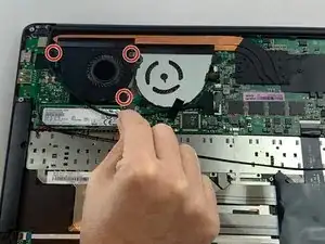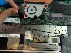 Удалите три винта по 3.38 мм с левого вентилятора (этот вентилятор должен быть черным).