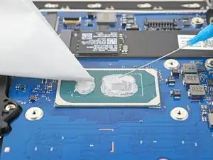 Удалите остатки термопасты изопропиловым спиртом и бумажным фильтром или салфеткой из микрофибры.