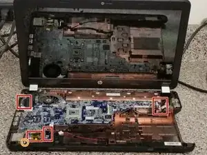 Снимите все отмеченные кабели с материнской платы.