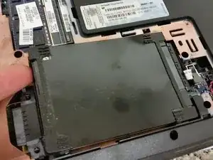 Просто выдвиньте оптический привод — винт, который его фиксировал, был удалён на предыдущем шаге.