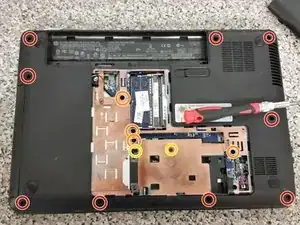 Удалите четыре винта средней длины с места, где была нижняя крышка.
