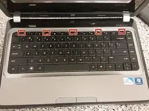 Толкните пять защёлок клавиатуры в сторону экрана с помощью плоской отвёртки.