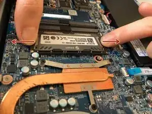 Осторожно потяните за зажимы, чтобы освободить модуль RAM.