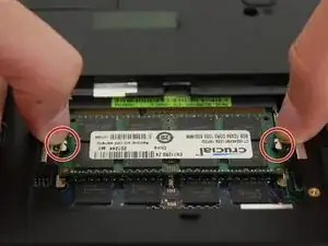 Осторожно расшатывайте фиксаторы с обеих сторон слота, удерживающие оперативную память на месте.
