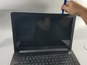 Расстояние между рамкой экрана и петлей ноутбука очень маленькое, а пластик обоих частей слабый. Однако для отсоединения рамки экрана от петли ноутбука потребуется приложить значительное усилие. Будьте осторожны на этом шаге, чтобы ни одна из пластмассовых деталей не сломалась.
