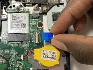 Отсоедините провода батареи от разъема на материнской плате над батареей.