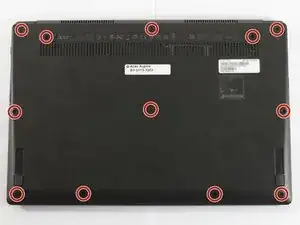 Найдите и удалите все 12 винтов Philips #00 длиной 6 мм на задней стороне ноутбука.