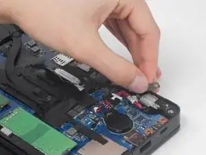 Используйте заостренный край лопатки, чтобы аккуратно вытащить соединитель материнской платы порта зарядки.