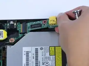 Выкрутите винт длиной 3 мм с задней части ноутбука той же отверткой.