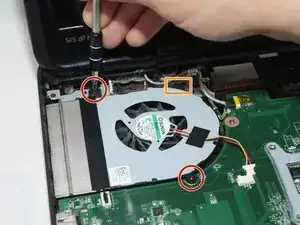 Используйте крестовую отвертку #0, чтобы вывернуть два пять миллиметровых винта с вентилятора охлаждения.