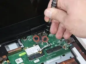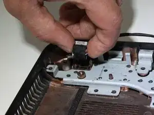 Используйте крестовую отвертку #0, чтобы вывернуть пять миллиметровый винт с основания разъема питания постоянного тока.