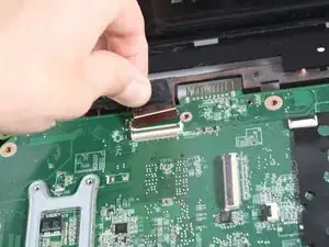 Поднимите черную защелку, к которой подключается кабель клавиатуры на материнской плате