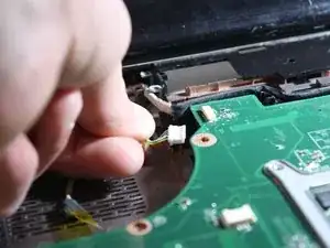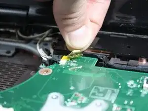 Потяните пальцем за желтую ленту и отключите кабель веб-камеры.