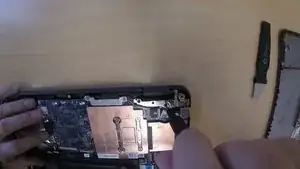 Поднимите основание Chromebook, чтобы приподнять петлю. Это даст вам достаточно места для удаления разъема зарядки.