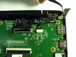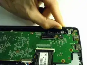 Отсоедините разъём зарядки от материнской платы с помощью лопатки, выталкивая 4-жильный разъём из порта.