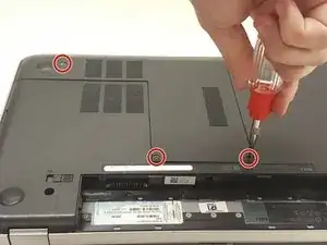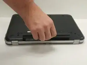 Переверните ноутбук так, чтобы снизу была видна нижняя панель.