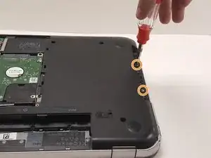 Отвинтите 2 винта под дисководом крестовой отвёрткой 2.0 мм.