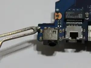 Запаяйте новый разъём питания на место, восстанавливая соединение четырёх контактов.