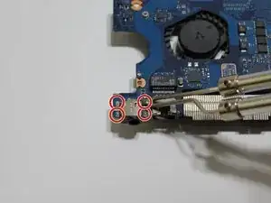 С помощью отвертки стандарта J0 выкрутите четыре винта 4,5 мм в углах материнской платы.
