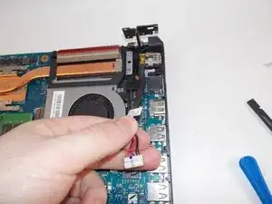 С помощью антистатического лопаткообразного инструмента отсоедините разъём питания, потянув штекер прочь от его гнезда.