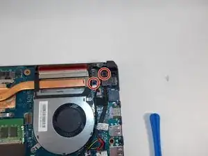 Удалите два винта 6 мм, удерживающие петлю экрана и разъём питания, используя отвертку Phillips #1.