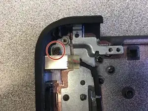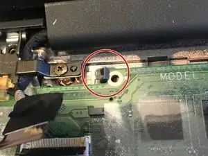 Найдите пластиковые защёлки/язычки, удерживающие системную плату. Их две: одна у батареи и одна у левой петли.