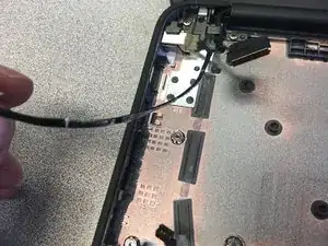 Кабель питания DC IN приклеен к нижней сборке. Отклейте кабель.