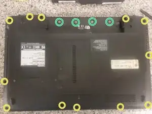 Переверните ноутбук и открутите двенадцать винтов M2.5x6.5.