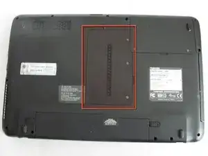 Открутите три винта 4,6 мм, удерживающие панель, используя отвертку Phillips №1. Панель расположена по центру на нижней части ноутбука.