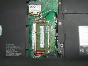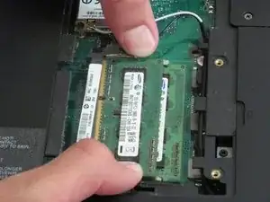 Отожмите две защёлки наружу, отдаляя их от оперативной памяти. Модуль оперативной памяти должен подскочить.